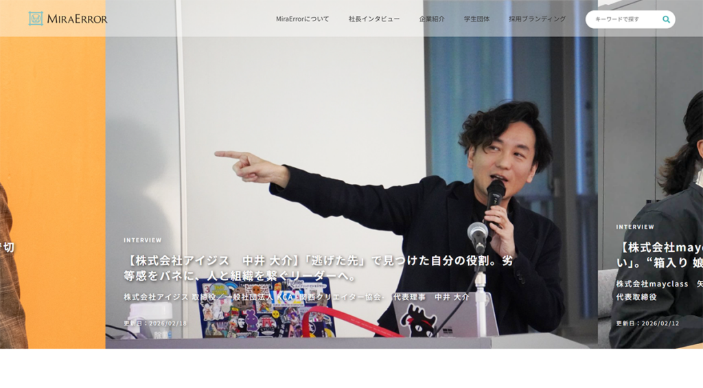 社長の失敗経験や苦労をあえて提示することで、その社長の人間らしさ、会社の魅力を発信するメディア「MiraError(ミラエラ)」にて、弊社取締役である中井のインタビューが掲載されました!