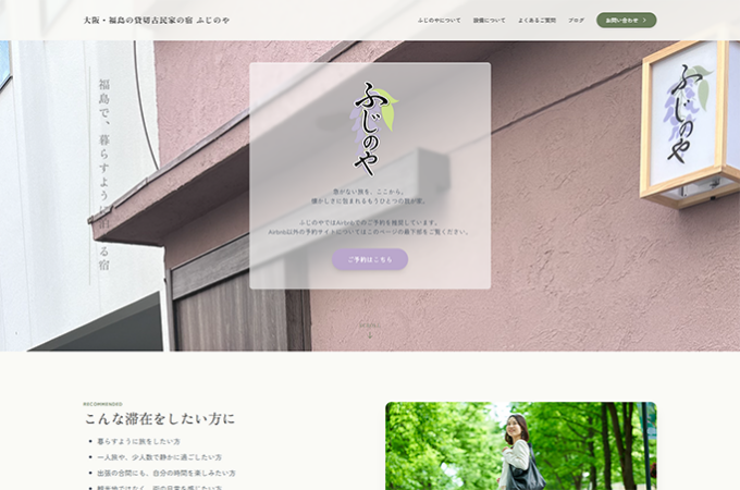 大阪は福島にある、まるまる貸切の一軒家の宿・ふじのや様のWEBサイトを制作させて頂きました。